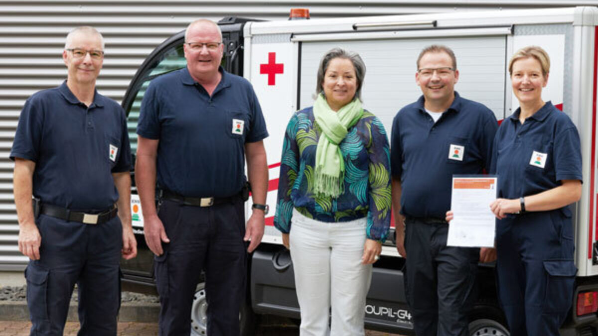 Kathrin Weber ist seit Mai neue Betriebssanitäterin am Standort Einbeck. Vorstandsmitglied Eva Kienle überreichte ihr die Ernennungsurkunde. „Betriebssanitäter sind erweiterte Ersthelfer“, sagt Kathrin Weber. Wer im Betrieb einen Erste-Hilfe-Kurs gemacht hat, kann eine zweiwöchige Grundausbildung und einen einwöchigen Aufbaulehrgang anschließen. „Es ist etwas Sinnstiftendes, man lernt Kolleginnen und Kollegen kennen, und es gibt Sicherheit auch im privaten Umfeld.“